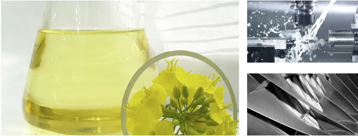 Soluble oils for machining based on synthetic esters of vegetable origin, as micro-emulsions, semi-synthetic or fine emulsions, the MECAGREEN range of water-soluble coolant lubricants is intended for machining by removal of swarf or abrasion operations. The range is in the form of water-soluble concentrates.